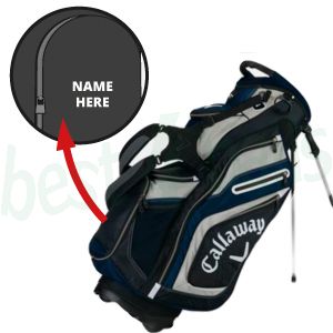 Add your choice of personalisation to the great new stand bag from Callaway. We will print your initial or simple logo onto the front water resistant pocket. Your personalisation will be vinyl printed in white. No minimum quantity, order just one bag. The printing lead time for personalised golf bags is 5-7 working days plus delivery.