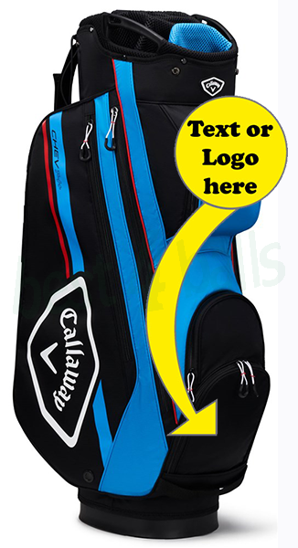 Copyright Declaration. In order to use a design on any of our products you represent and warrant that: You are the owner of the content or the content is in the public domain. You have the legal right and authority to reproduce this design. You have no knowledge as to any third-party claims regarding the intellectual property. The content does not infringe the rights of privacy, celebrity, moral or other rights of any third party. The work is not defamatory or obscene. The content does not contain illegal material. Best4balls.com reserves the right to object to printing material that may be obscene or may conflict with this copyright declaration. We hope you will be pleased with our Personalised Callaway Chev 14+ Cart Bag.