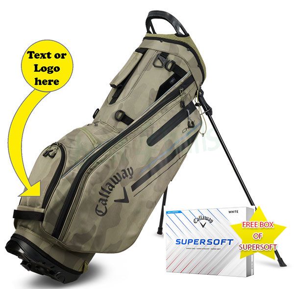 - SPECIAL OFFER - Get a FREE box of Callaway Supersoft with each golf bag. Options for plain or personalised golf balls printed with the same image or text as your golf bag.