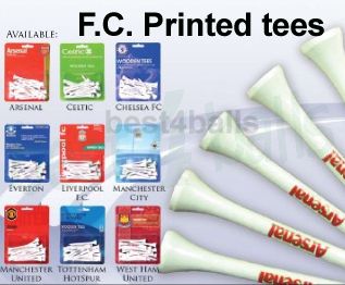 69mm white wooden tees printed with the team logotype and sealed with a shiny gloss varnish that highlights the vibrant team colours.