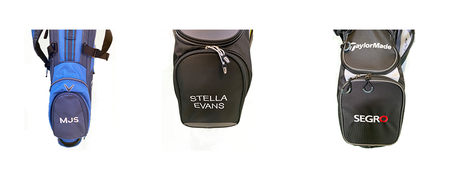 Our golf bags can also be embroidered with a name, initials, or a logo. We can also print full colour vinyl logos or photos, which look amazing.