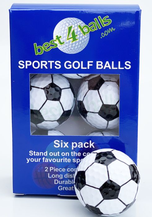 Supplied as a box of six balls in our sports balls packaging, these novelty football golf balls are ideal for birthday or Christmas presents for football crazy kids.