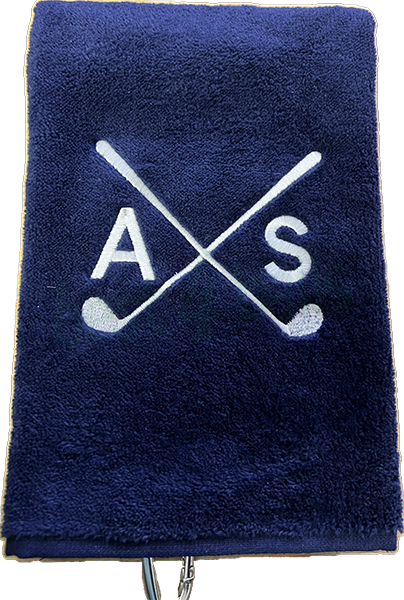 All towels will come embroidered with 2 initials embroidered either side of the golf club design.