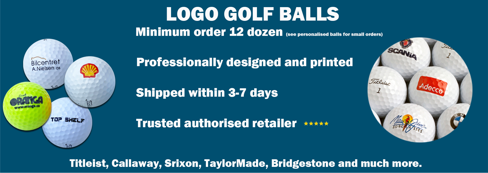 All of our logo golf balls are processed and printed in-house by our dedicated logo print and sales teams, which will manage your order from producing artwork, proofing, amending proofs, printing and shipping your logo golf balls
