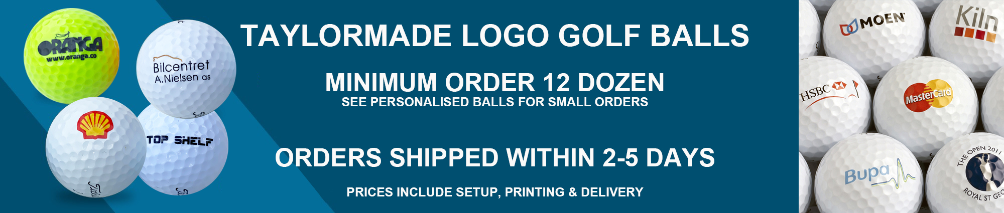 Our logo service is suitable for orders of 12 dozen or more, if you require less than 12 dozen golf balls or of you require a photo or complex logo printing please try our TaylorMade personalised golf balls service (minimum order 1 dozen).