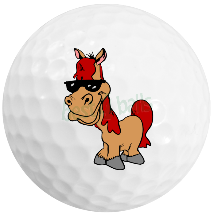 How to personalise your Horse printed golf balls: The horse image will be printed to side one of your golf balls. To personalised side two click the Red 'Personalise' button and select the 'Photo/Logo' or 'Text' option. An online visual will appear on the golf ball before you add to cart. We do not offer visual proofs before printing.