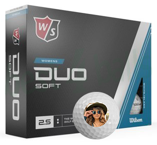 Copyright Declaration. In order to use a design on a golf ball you represent and warrant that: You are the owner of the content or the content is in the public domain. You have the legal right and authority to reproduce this design. You have no knowledge as to any third-party claims regarding the intellectual property. The content does not infringe the rights of privacy, celebrity, moral or other rights of any third party. The work is not defamatory or obscene. The content does not contain illegal material. Best4balls.com reserves the right to object to printing material that may be obscene or may conflict with this copyright declaration. We hope you will be pleased with our personalised service on Wilson Women's Duo Soft golf balls.