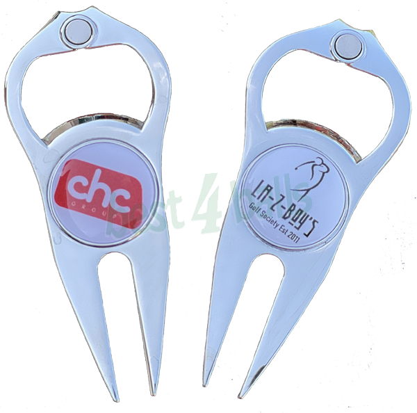 How to personalise your Silver Pitchfork and Bottle Opener: Click the Red 'Personalise' button above and select 'Photo/Logo' or 'Text' option. An online visual will appear before you add to cart. We do not offer visual proofs before printing. Images or logos can be cropped into a circle which will best fit the print area on the ball marker