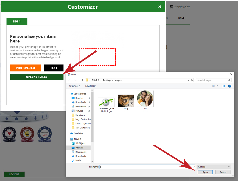 From here select the location of the photo/logo you want printed onto your golf balls find your file and click open.