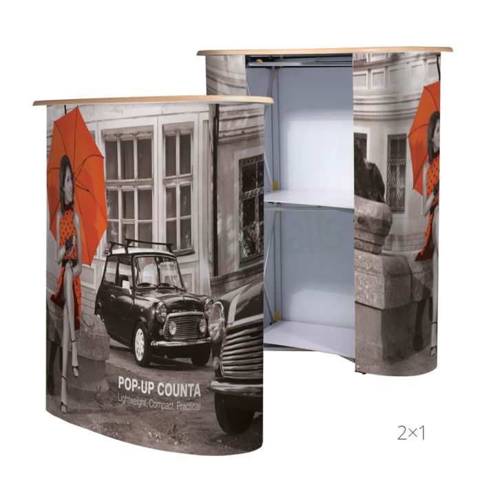 How to customise your Pop Up Display Counter: Click the Red 'Personalise' button above and select 'Photo/Logo' or 'Text' option. An online visual will appear before you add to cart.
