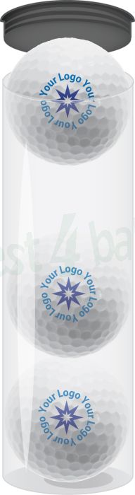 - Fit three golf balls perfectly and are ideal for promotional purposes. The clear tube is an excellent way to display your logo, and it a good alternative to the standard 3 ball branded boxes.